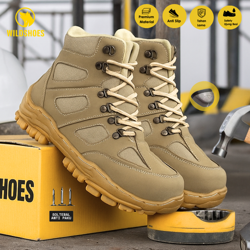 Sepatu Safety Pria Boots - Shoes Safety Ujung Besi - Sepatu Pria Boot Outdoor Tracking Adventure - WILDSHOES