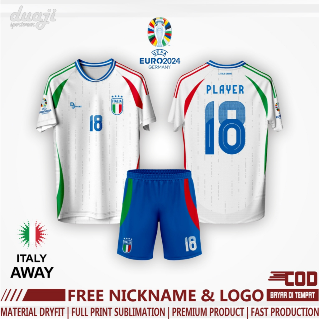 Jersey Timnas Italy Euro 2024 Home Away Full Printing Premium Custom Nama Size Anak & Dewasa