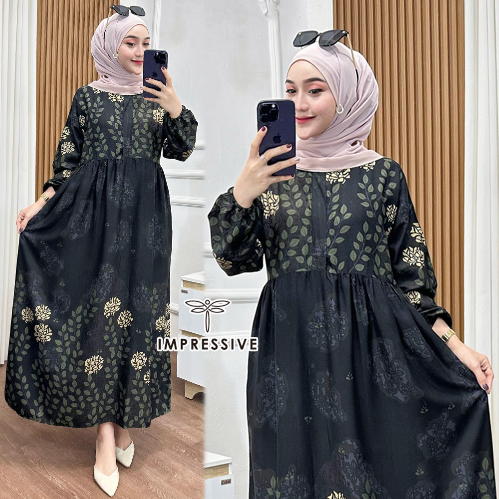 Kalana Midi Dress LD 110 Dress Busui friendly mat rayon MOTIF BUNGA