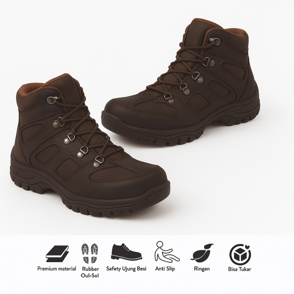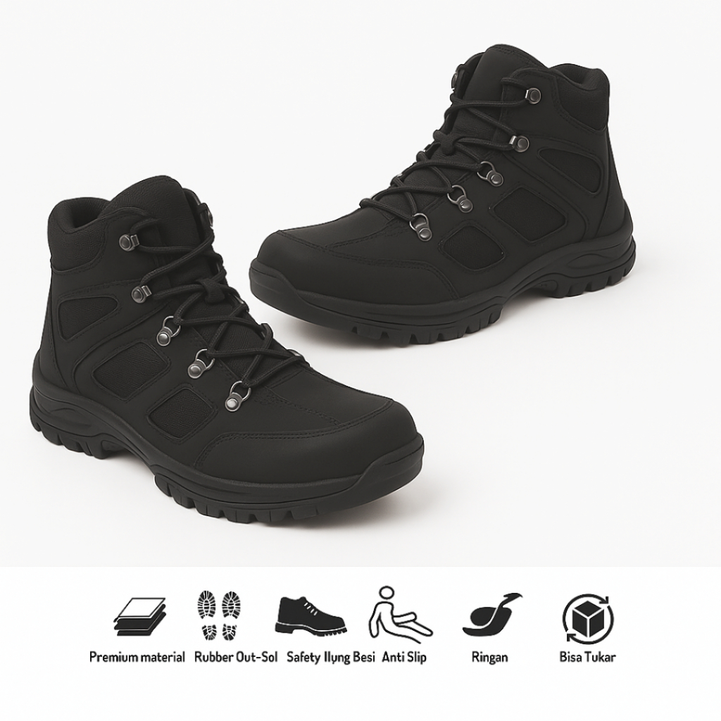 Sepatu pria croile endure Hitam boot safety ujung besi boots tracking Model Keren Size 39-44