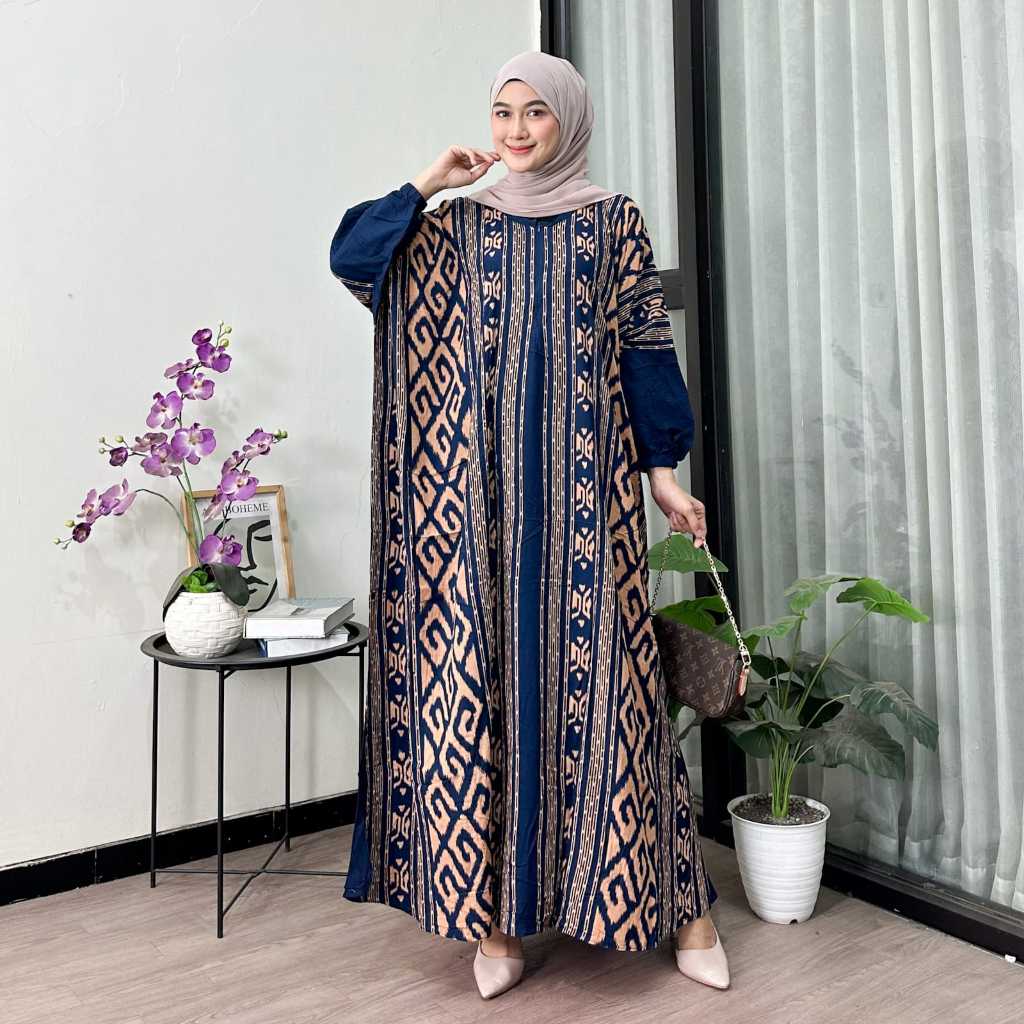Kaftan Motif Asmad Muslimah jumbo Busui Bahan Rayon Premium Adem Nyaman Ld 170 Gamis Dress Abaya Wanita Muslim Viral Mewah