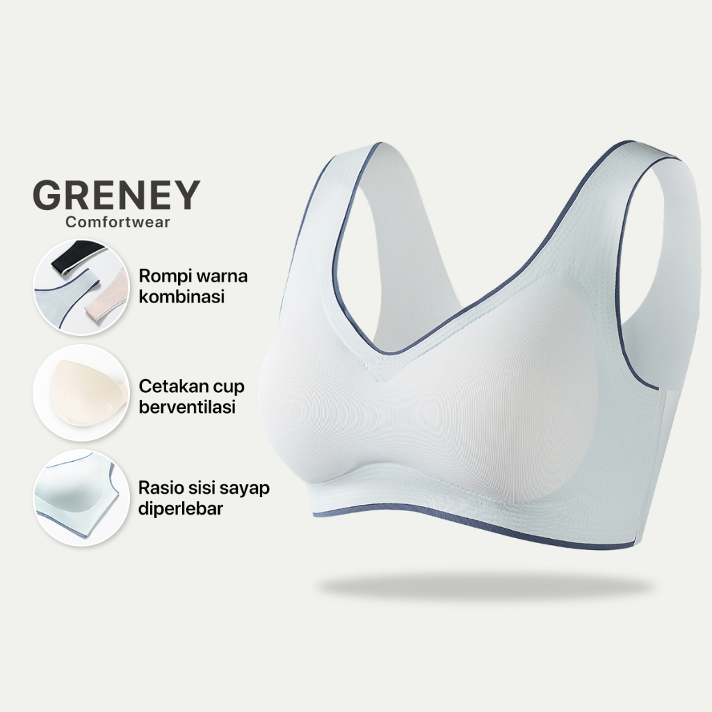 GRENEYGbras Bra Rompi Warna Kombinasi Pakaian Dalam Push Up Bra Wanita Sport Tanpa Kawat Busa 89661
