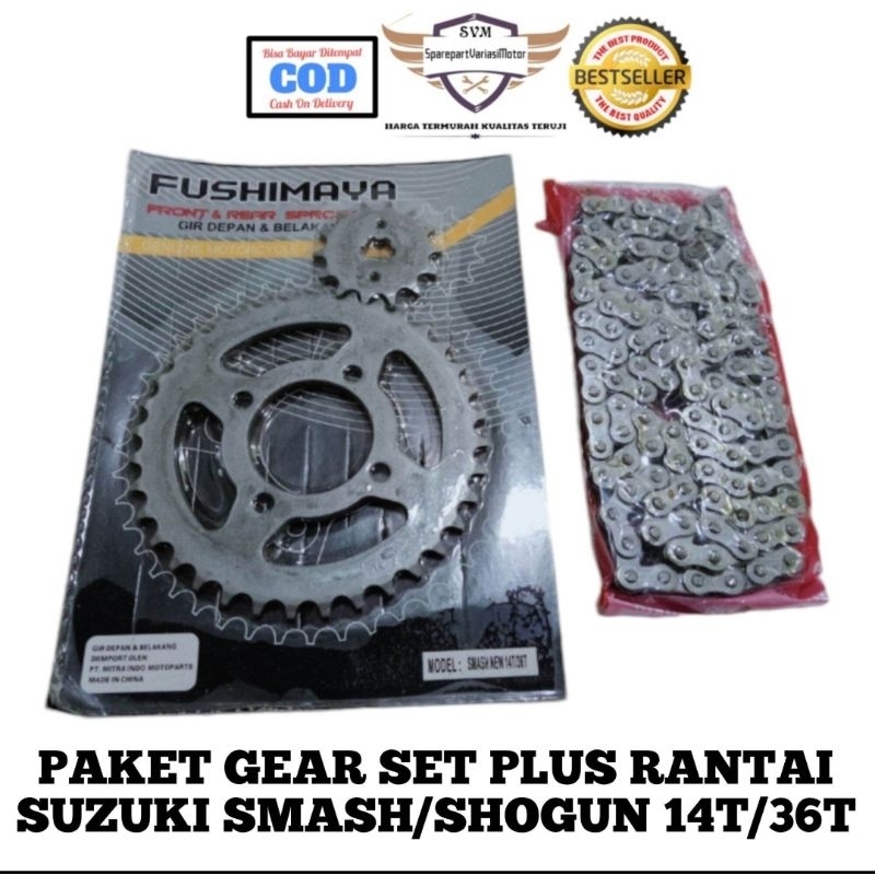 GEAR GIR SET SMASH SHOGUN 36T GEAR PAKET DEPAN BELAKANG SMASH SHOGUNE 36T PLUS RANTAI 428/104L