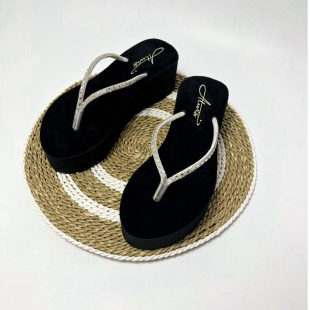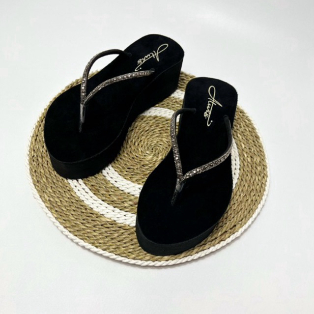 Alwisshoes - Gaia Sandal Wedges Jepit Wanita Premium Tinggi 5cm Sendal Cewek Kasual Kekinian Karet