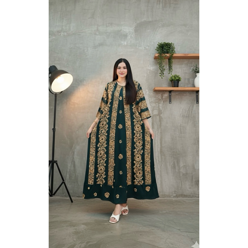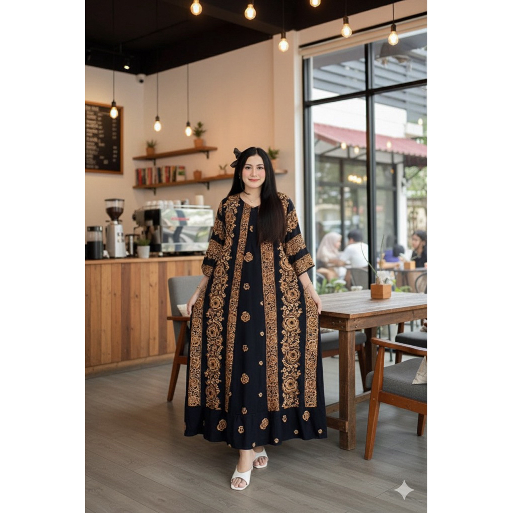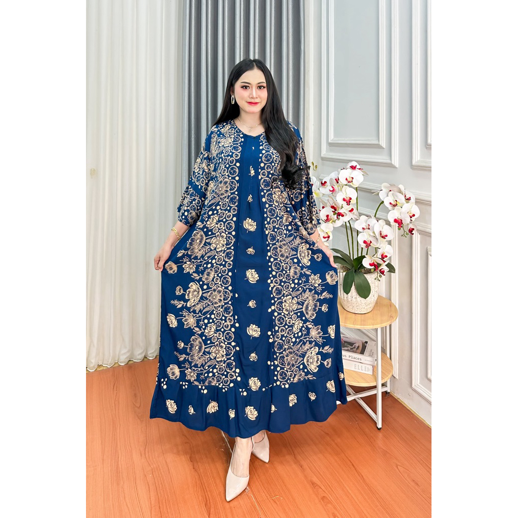 DRESS MAWAR RAYON SUPER JUMBO LD 130CM MOTIF MAWAR LENGAN 34 GROSIR DASTER JUMBO SANTAI WANITA