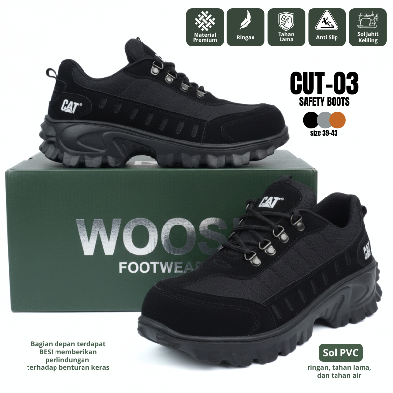 Sepatu Safety Pria Boots Ujung Besi - Shoes Safety - Tracking Adventure -WOOSH FOOTWEAR