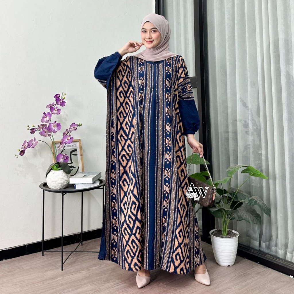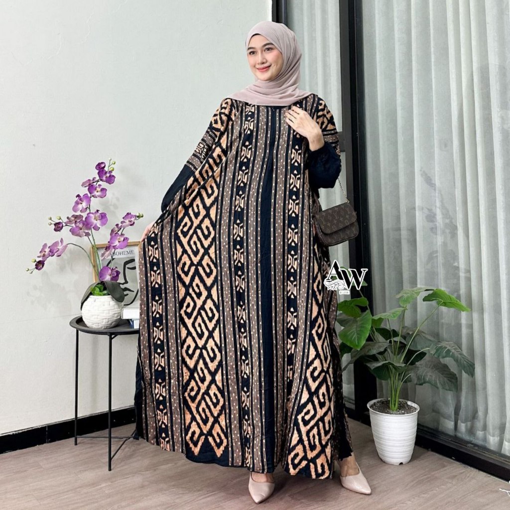 Asmat Kaftan Rayon Jumbo Kaftan Batik Motif Sultan Encim Busui Lengan Panjang Gamis Kaftan Lebaran