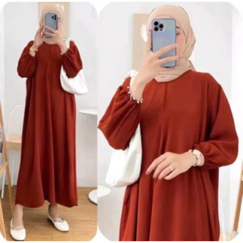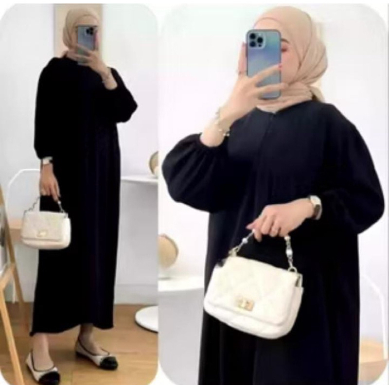 Midi dress crikle premium polos muslim dengan Zipper depan casual panjang airflowwanita gamis kantong kanan