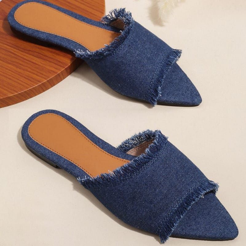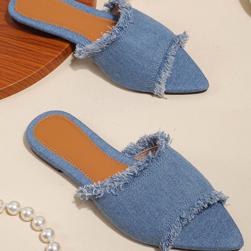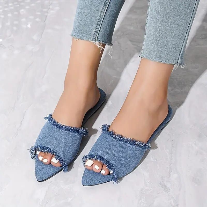Sandal Wania Flat Jeans Sendal Teplek Denim Wanita Terbaru Kekinian Non Slip RIngan SIze 36-41-AVN03