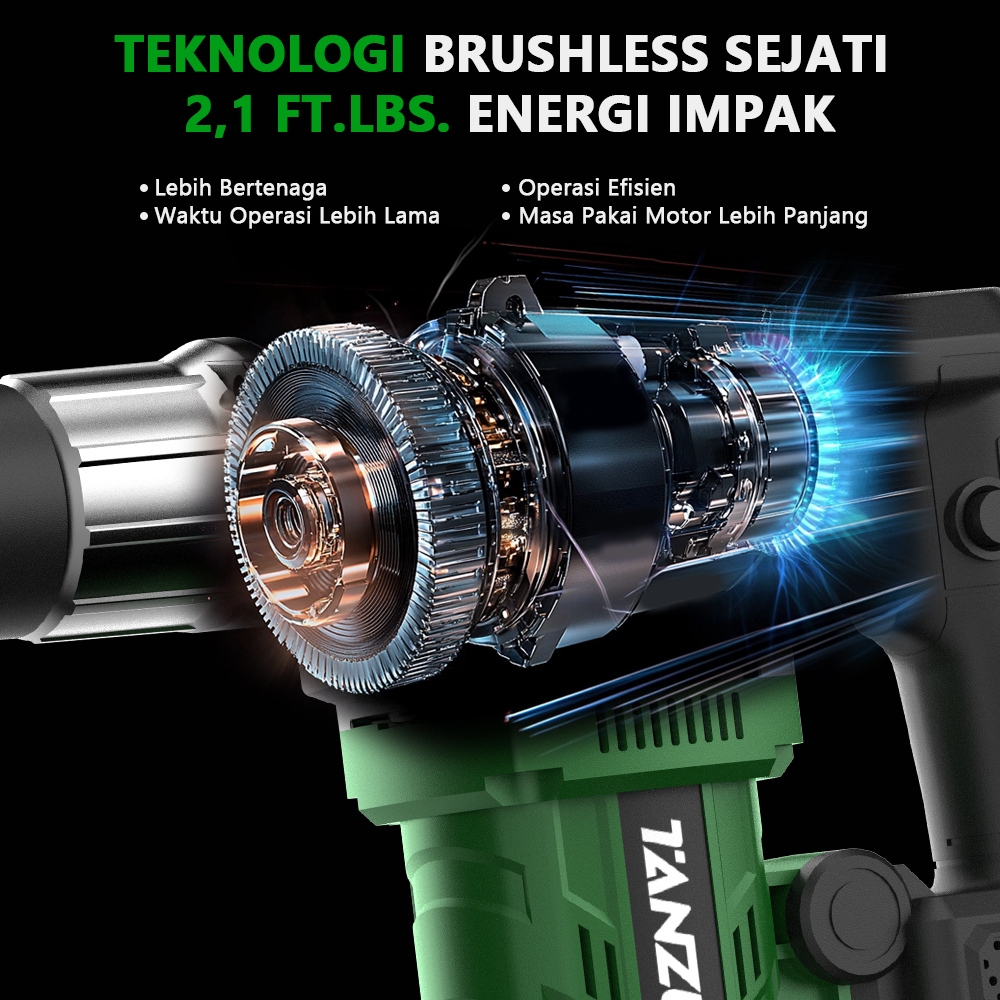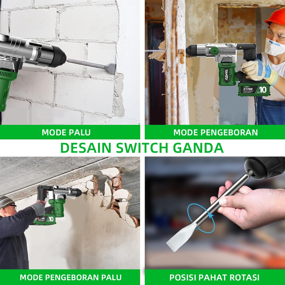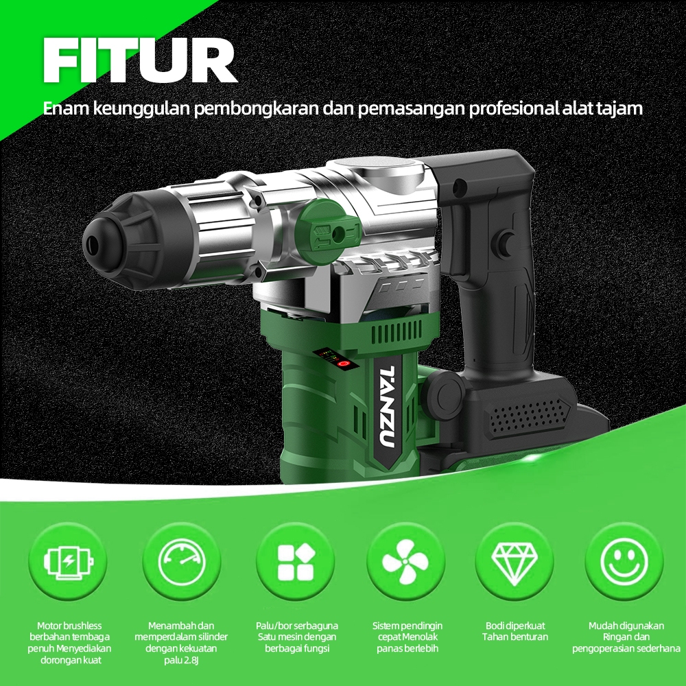 TANZU 600W 2-in-1 Bor Rotary Hammer Baterai Motor Brushless Mesin Bobot Beton Ringkas dengan Baterai 21700, Cocok untuk