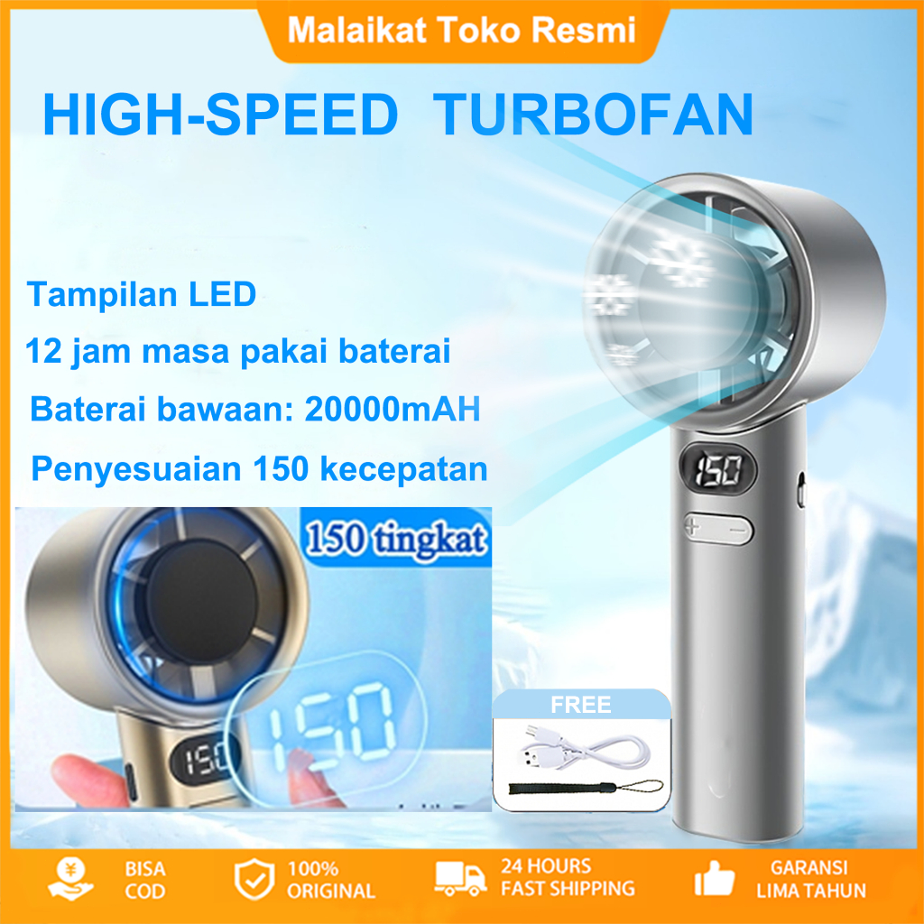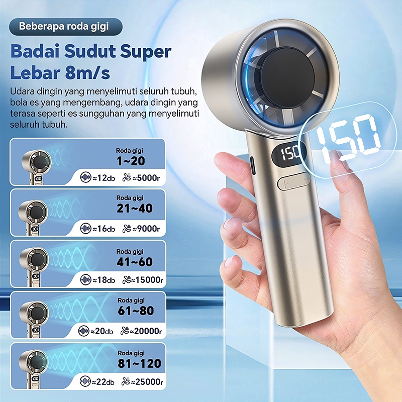 Kipas Angin Mini Portable 150 Tingkat - Tampilan Digital LCD, Turbo, Pendinginan Cepat, Isi Ulang USB (Kipas Tangan Genggam)
