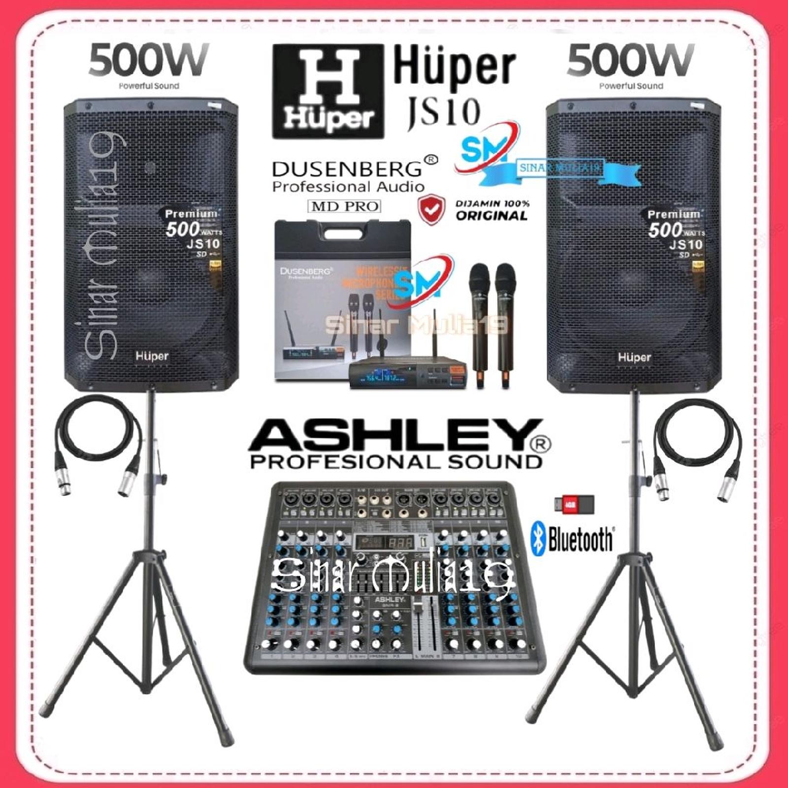 Paket Sound System Huper JS10 Original Mixer Ashley 8 Channel Bluetooth Mic Wireless