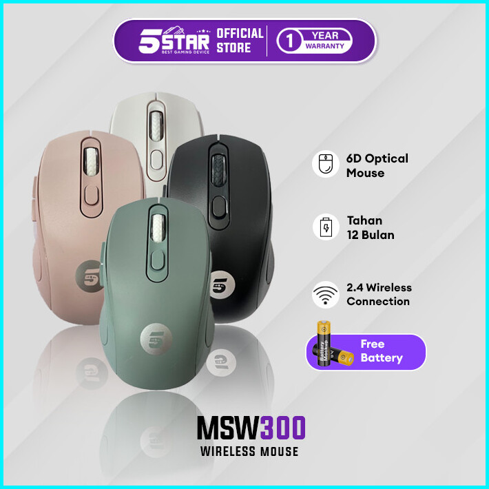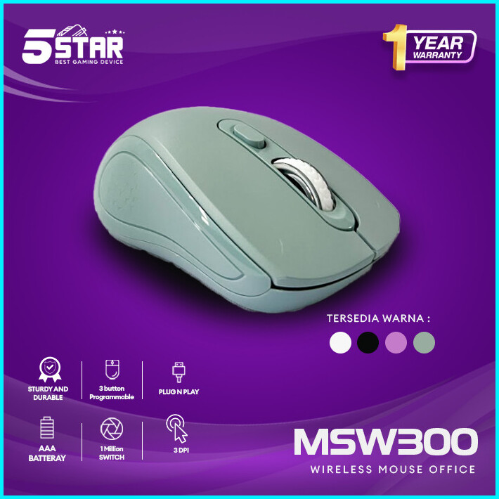 5star Msw300 Mouse Wireless 2.4ghz Silent Optical 1600dpi Dengan Receiver Usb