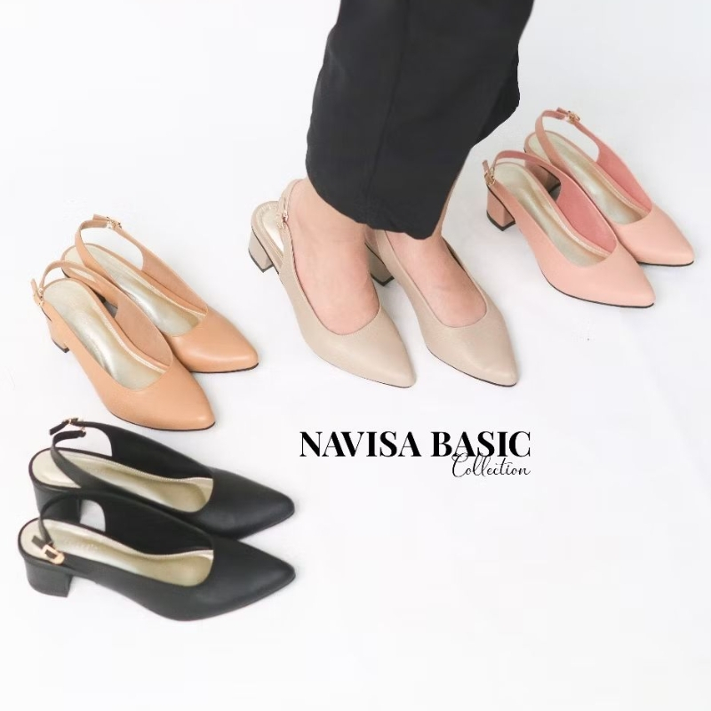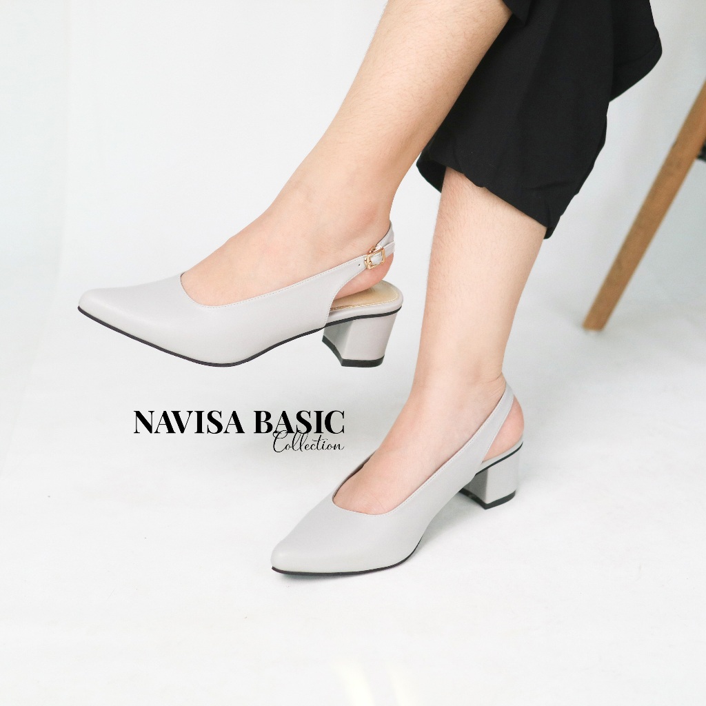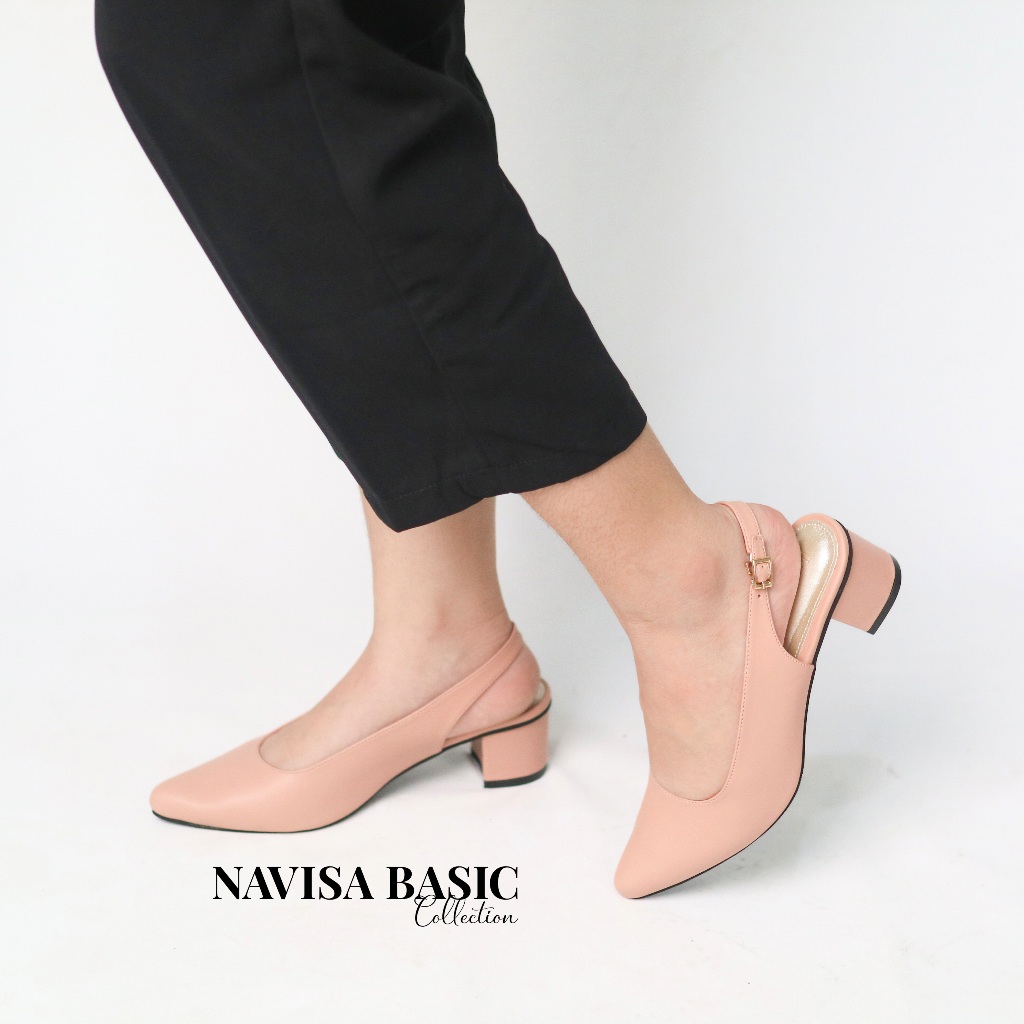 Mules Wanita Heels / Hak 5 cm / Sepatu Sandal Wanita Tali Belakang Navisa basic collection