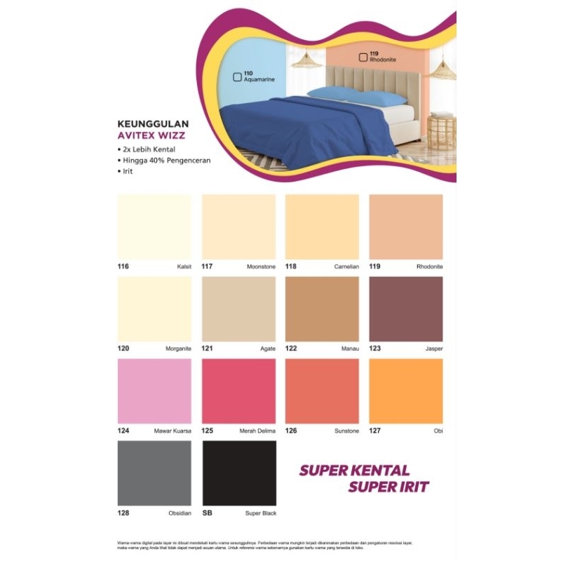Putih , 101 , 113 , 114 , 115, 116 , 120 , 108 , 109 , 110, 117 , 118 , 119 , 121 , 124, 112 , 102 , 1759T (Hijau Sage) , Frozen Violet, 670 , 916 , 919, 917 , 918, 831 Light Cream , 246 Pearl White , 911 , 040, 908 , 915 , Beige Harmony , R15 003, White as snow , R14-003 , G27 001 , ,