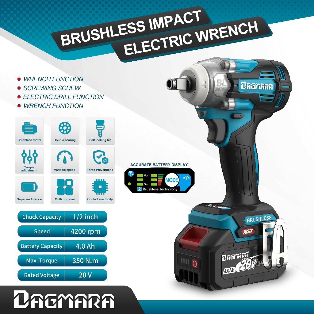 DAGMARA 350Nm Cordless Impact Wrench with Battery and Charger