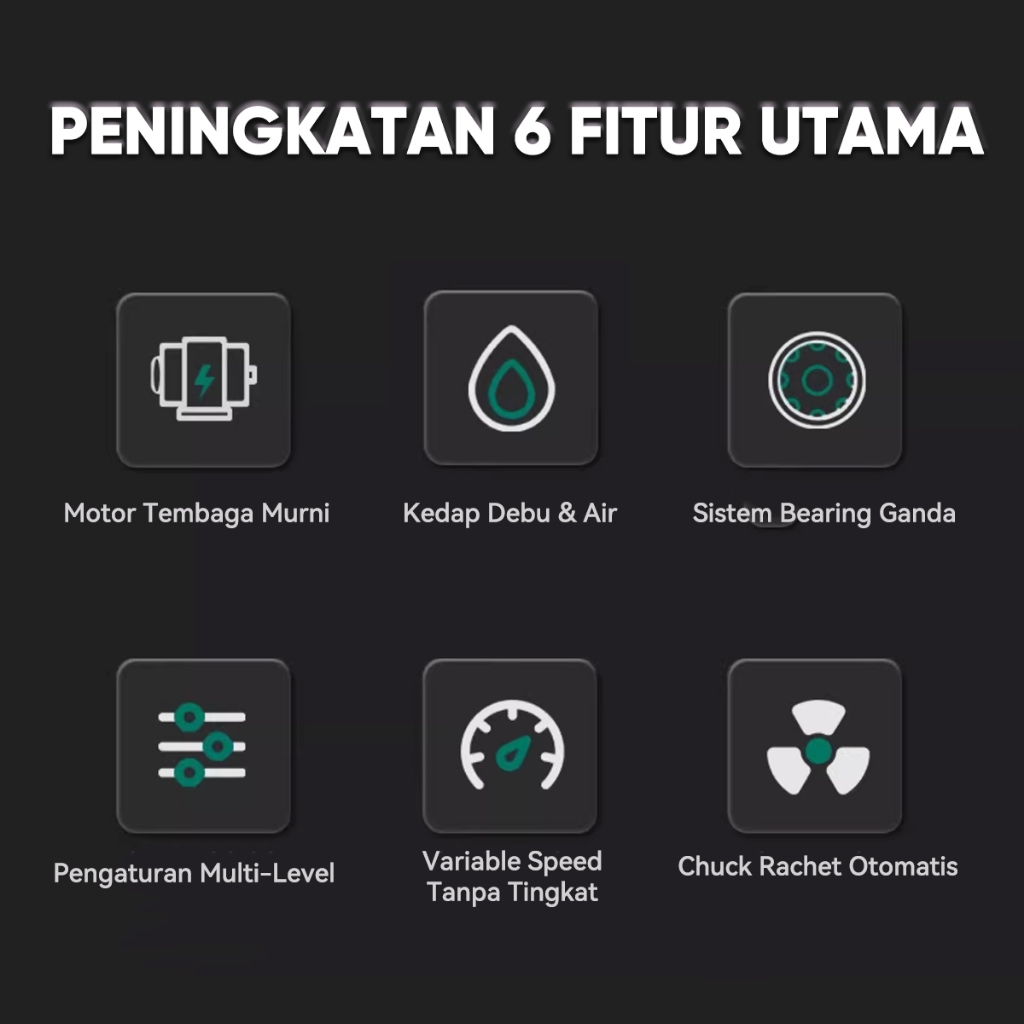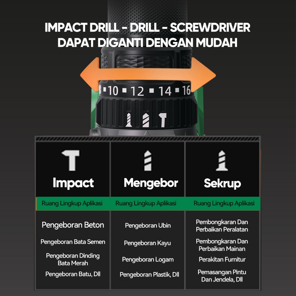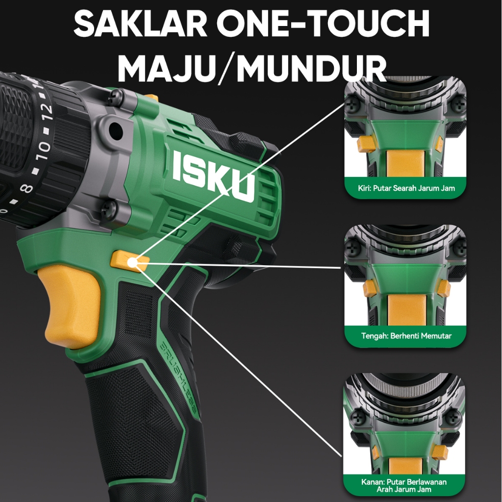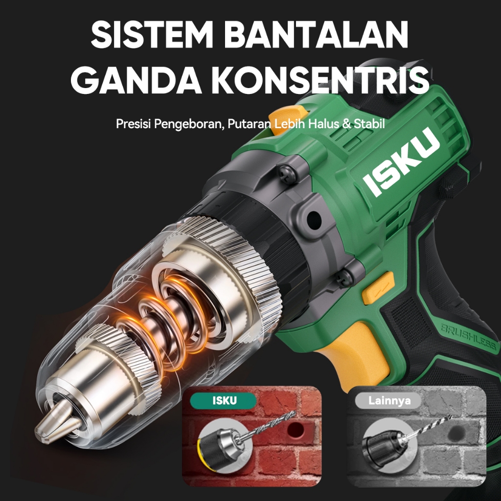 ISKU Brushless Impact Drill 70NM 21V - Bor Lithium Ion 3 in 1, Torsi Kuat, Tahan Air, Chuck 13mm Auto, LED