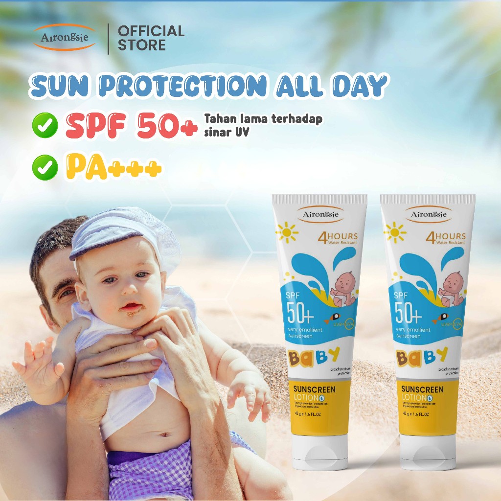 Airongsie Sunscreen Bayi & Anak Daily 45 ML Sunscreen SPF50+ UVA UVB Broad Spectrum WaterResistant
