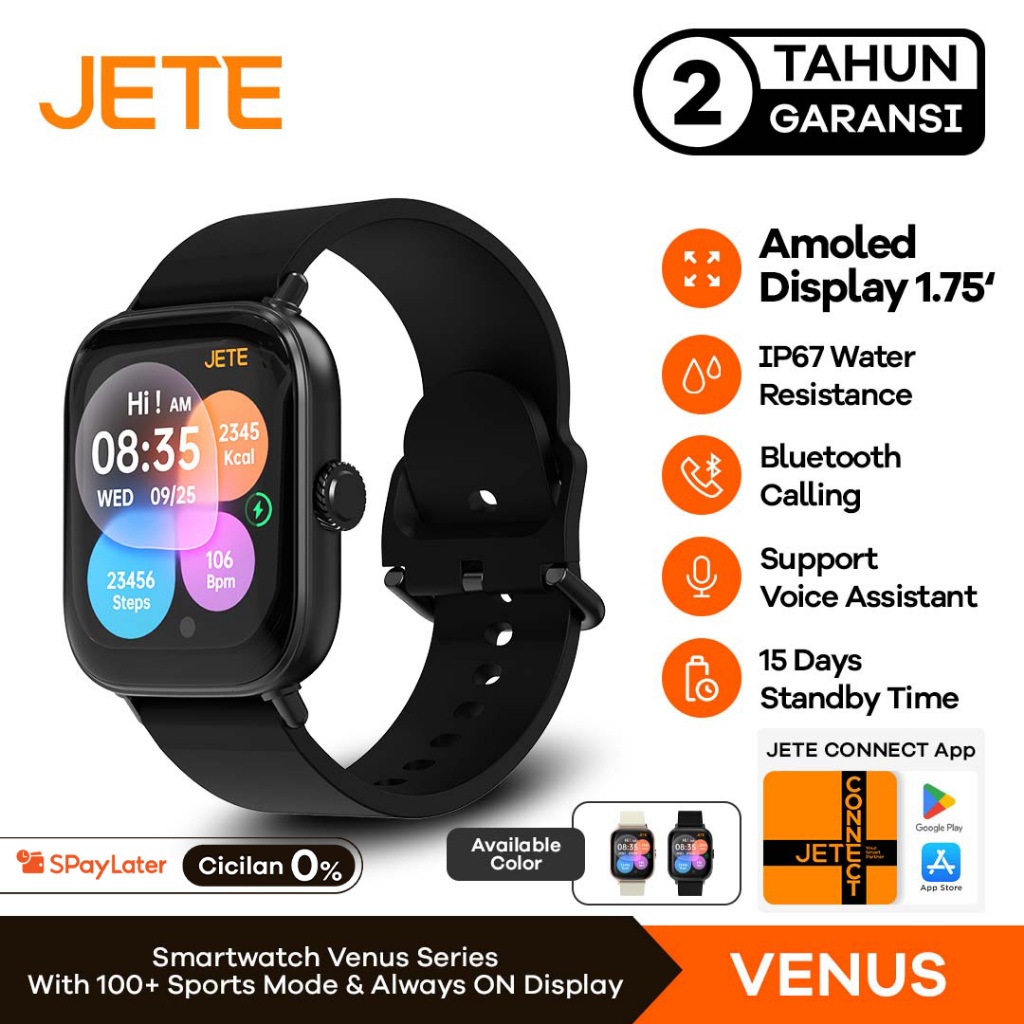 JETE Smartwatch Venus Jam Tangan 1.75 AMOLED AOD Screen Display IP67 Smart Watch Running Wireless Charging With 100 Sport Watch Mode