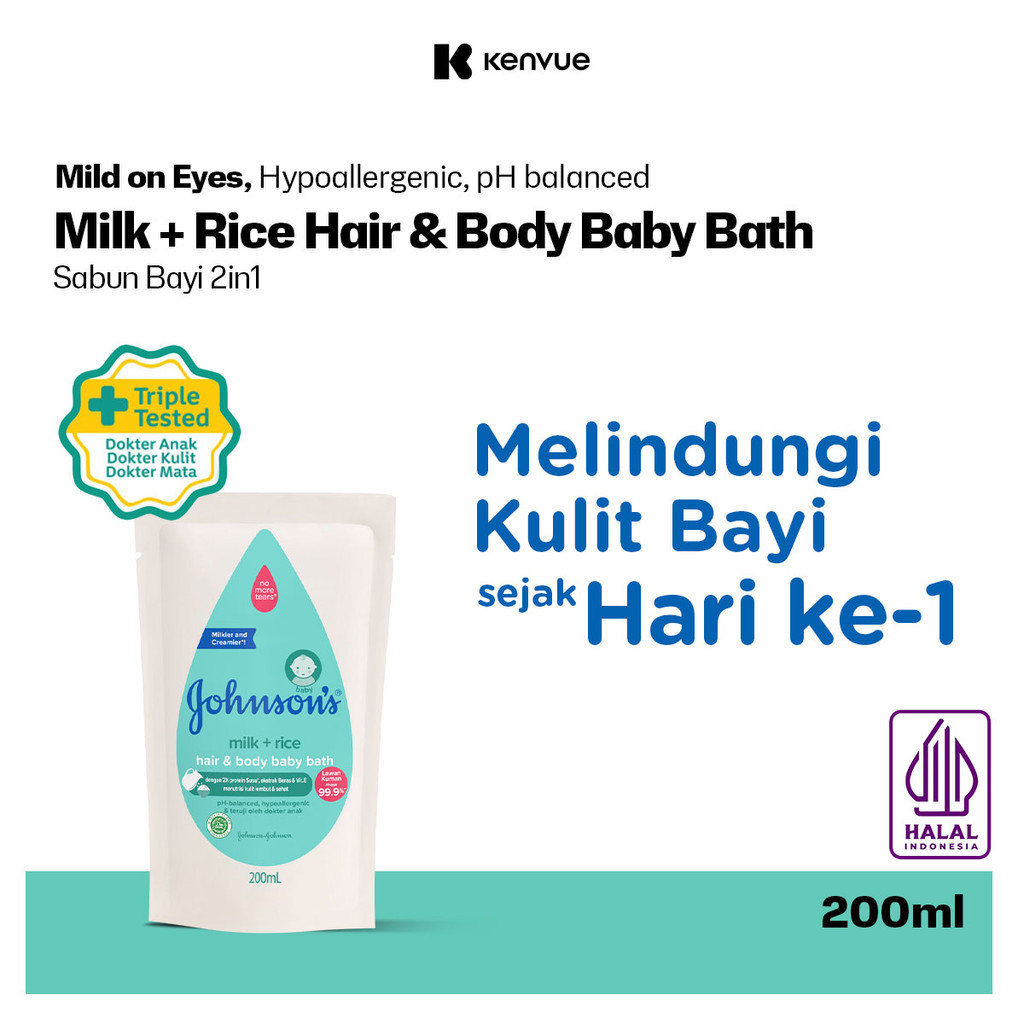 JOHNSON'S Milk + Rice Hair & Body Baby Bath Sabun Bayi 2in1 Refill 200ml