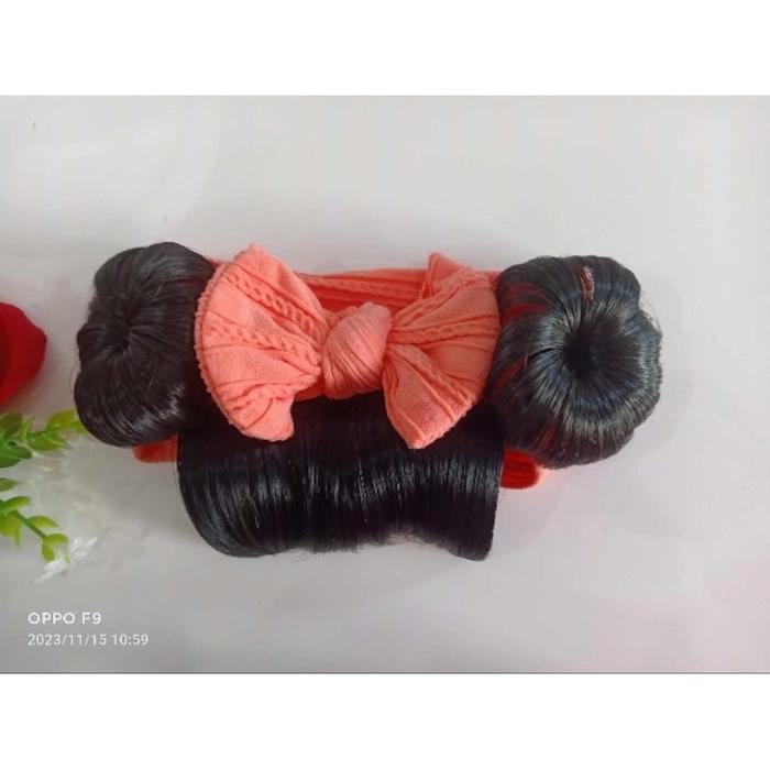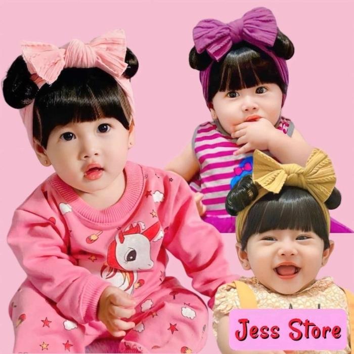BAN WIG LITTLE PRINCESS/ BAN PONI PITA CUTE PREMIUM 0-2TH TURBAN PONI WIG BAYI WIG BAYI 6 SAMPAI 12 - ONMODE - MUSTARD