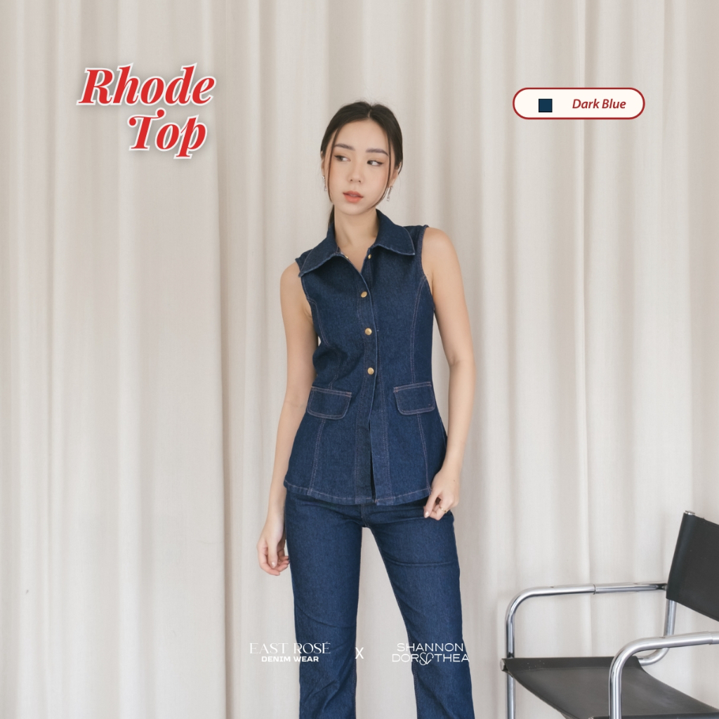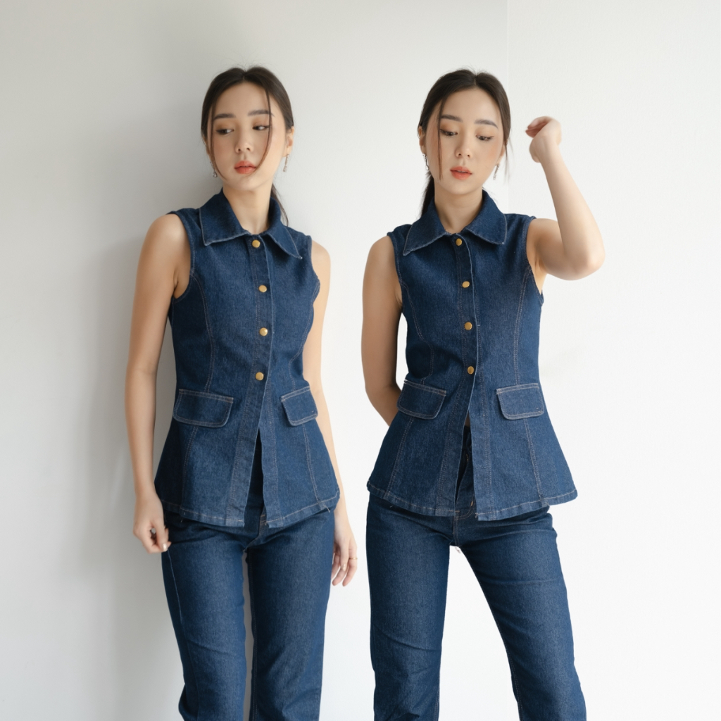 EastRose Rhode Top Atasan Denim Wanita Denim Jeans Denim Top Rompi Denim Wanita