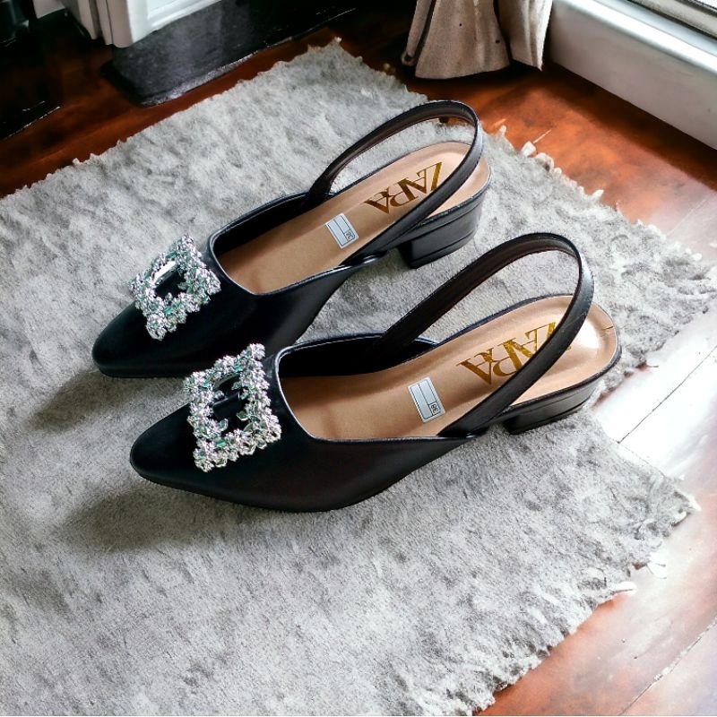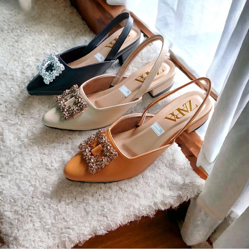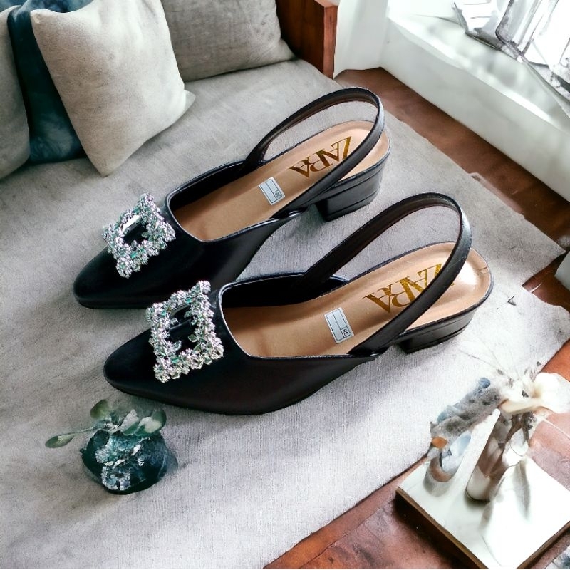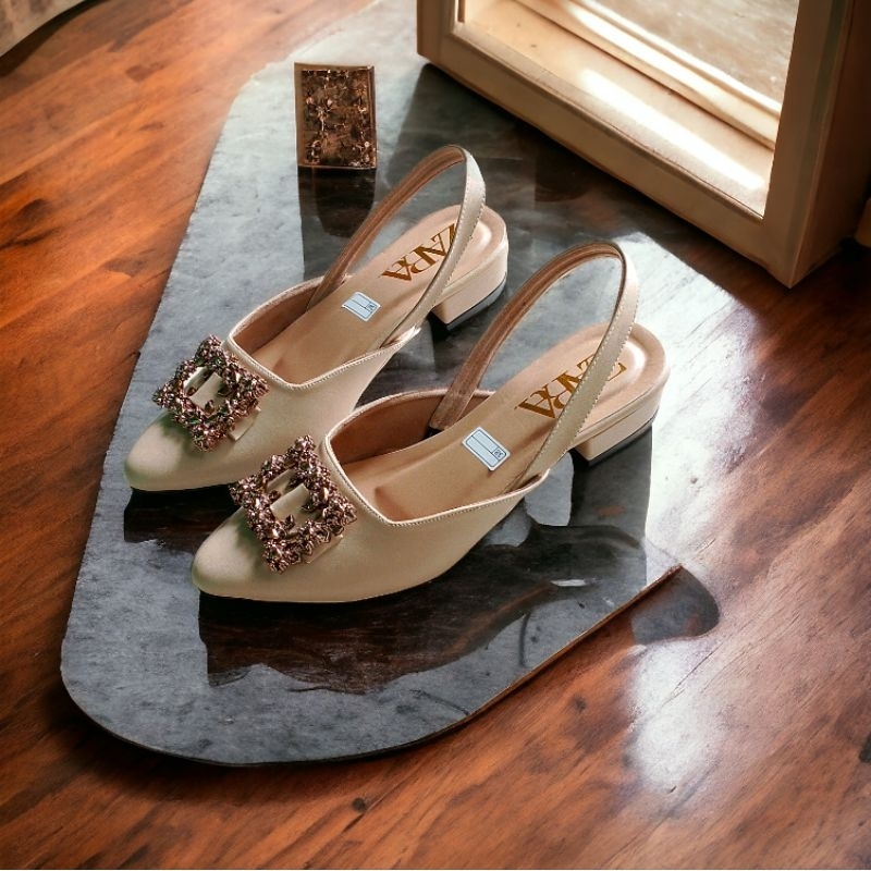sandal selop wanita hak tahu 2 cm el teru variasi permata bahan sintetis el kekinian
