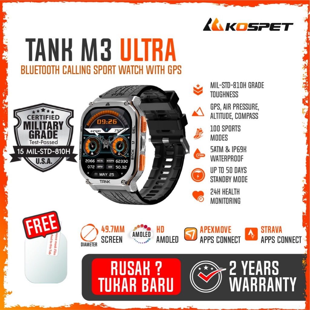 Kospet Tank M3 Ultra US 15 Military Grade Rugged Smartwatch GPS 1.96” Amoled 170+ Sports Modes Strava Support