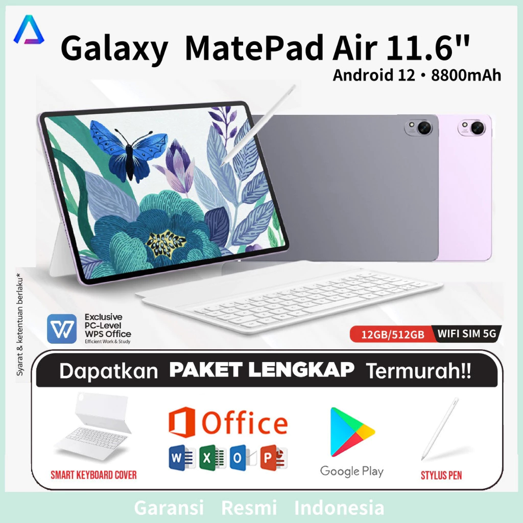 Tablet Matepad Air [12GB+512GB] Tablet Android 12.0 Layar Penuh 11.6 Inci Wifi/5G Dual SIM 8800mAhTablet Gaming Tablet Kantor Tablet Belajar Anak Siswa Belajar