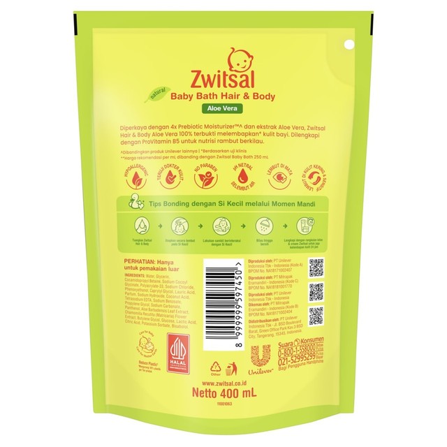 Zwitsal Baby Bath Hair & Body Aloe Vera 400mL