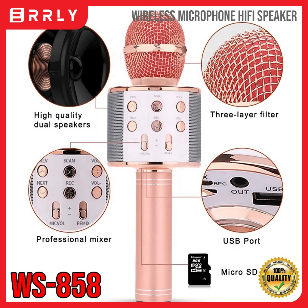 Mic Bluetooth Karaoke WS-858 Smule Wireless Karoke Microphone Karaoke Mikrofon 858 Mic Genggam WS858