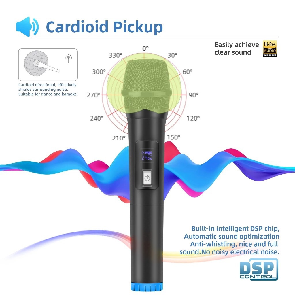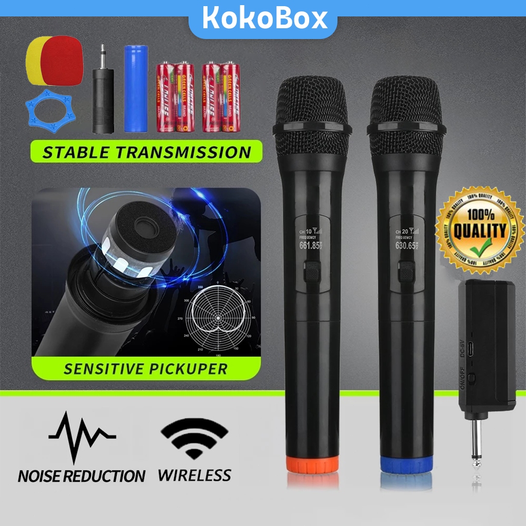 Microphone Wireless Handheld UHF Mic Wireless Karaoke MIC2 MIC1 Digital LED Mic Mikrofon Nirkabel Profesional UHF