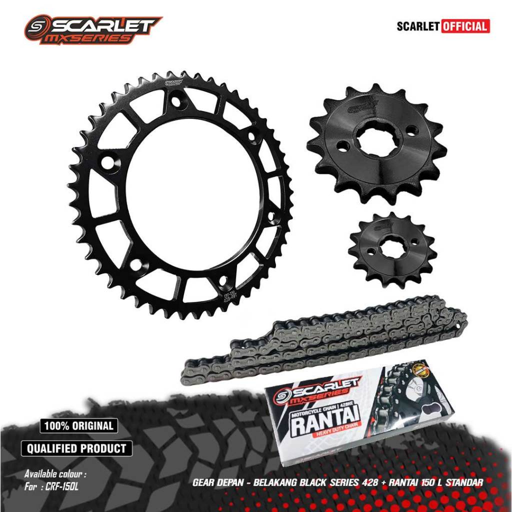 Scarlet Racing - Gear Gir Set Depan Belakang Black Series CRF 428 Plus Rantai Standar 150l