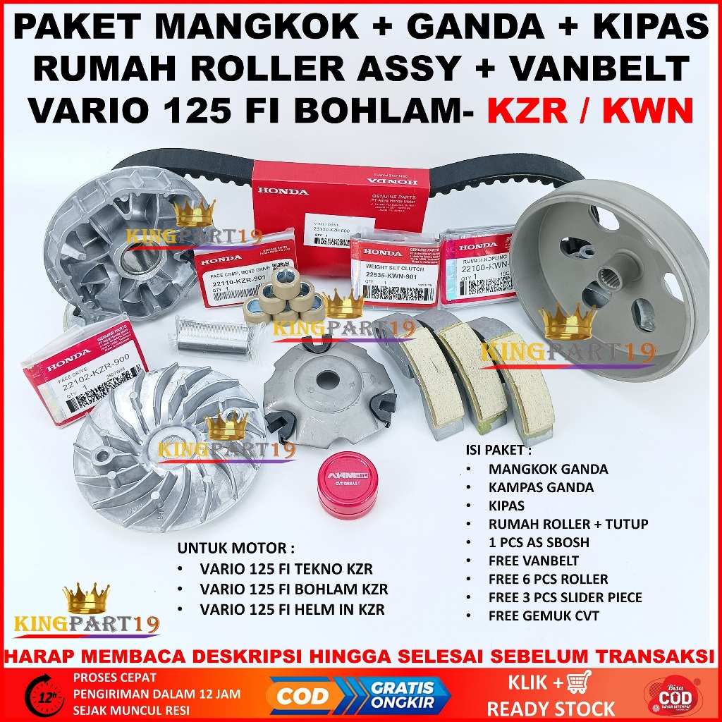 Paket Lengkap Kirian Mangkok Ganda Kipas Rumah Roller Vanbelt CVT Vario 125 FI Tekno Bohlam KZR