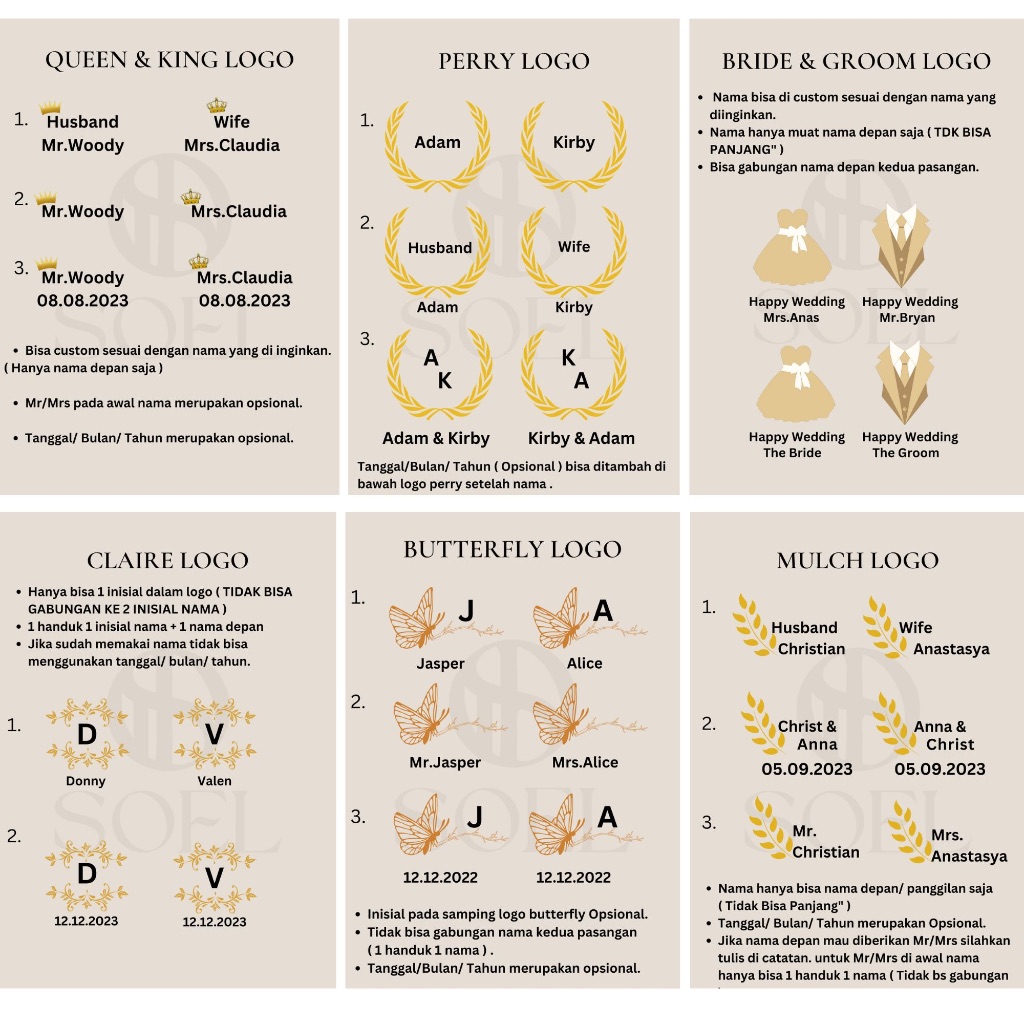Tanpa Bordir, Leaf Crown, Claire, Mulch, Queen & King, Swan, Perry, Butterfly, Pinatte, Groom & Bride, Heart, Promise, Gardenia