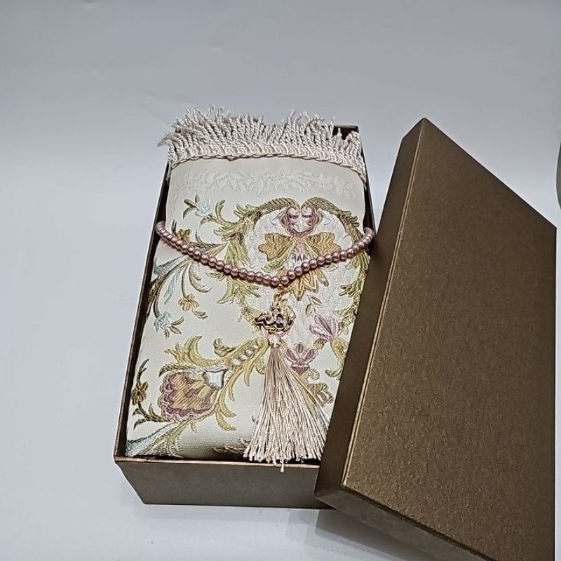 Sajadah Mahar Royal premium bordir satu set dengan tasbih mutiara lafaz Allah/ kado pernikahan/ hampers