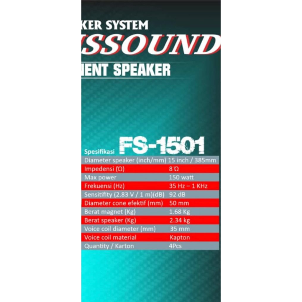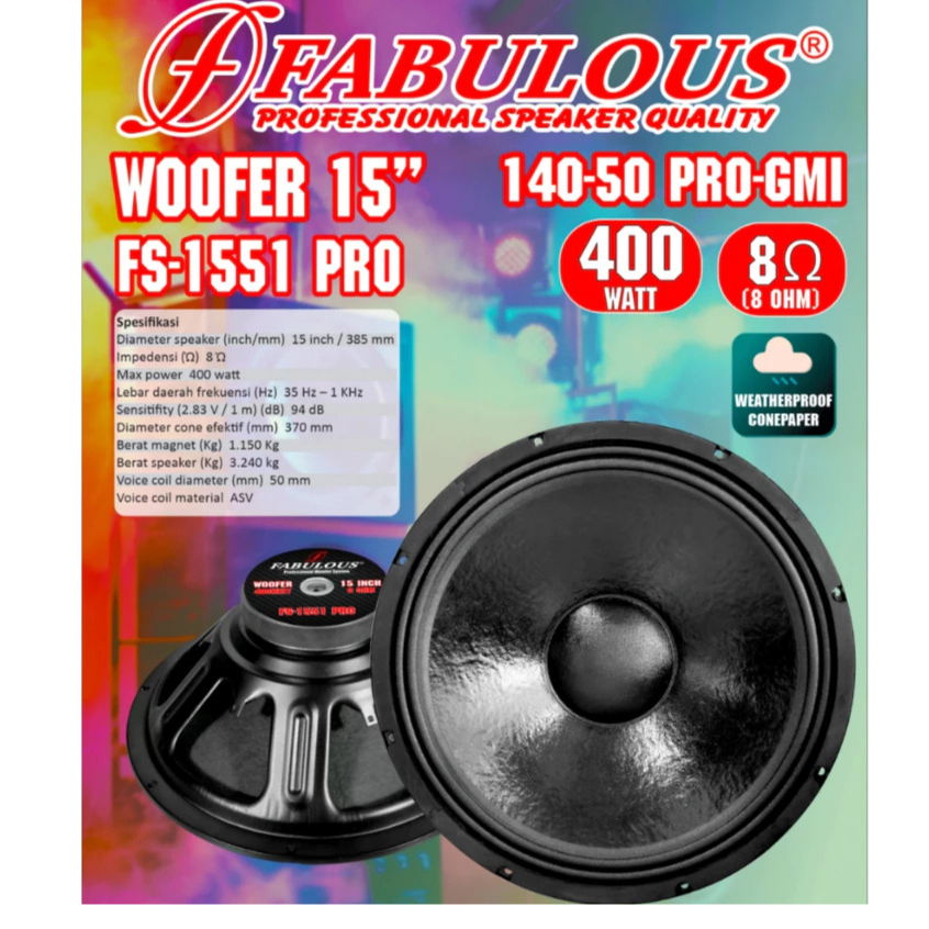Speaker 12" 130W FS 1201/12" 120W FS 1202/15" 150W FS 1501/1502 250W 1551 PRO 400W FABULOUS SOUND/Speaker Komponen Speaker Woofer 15 inch FABULOUS Bagus Paling Murah Terlaris