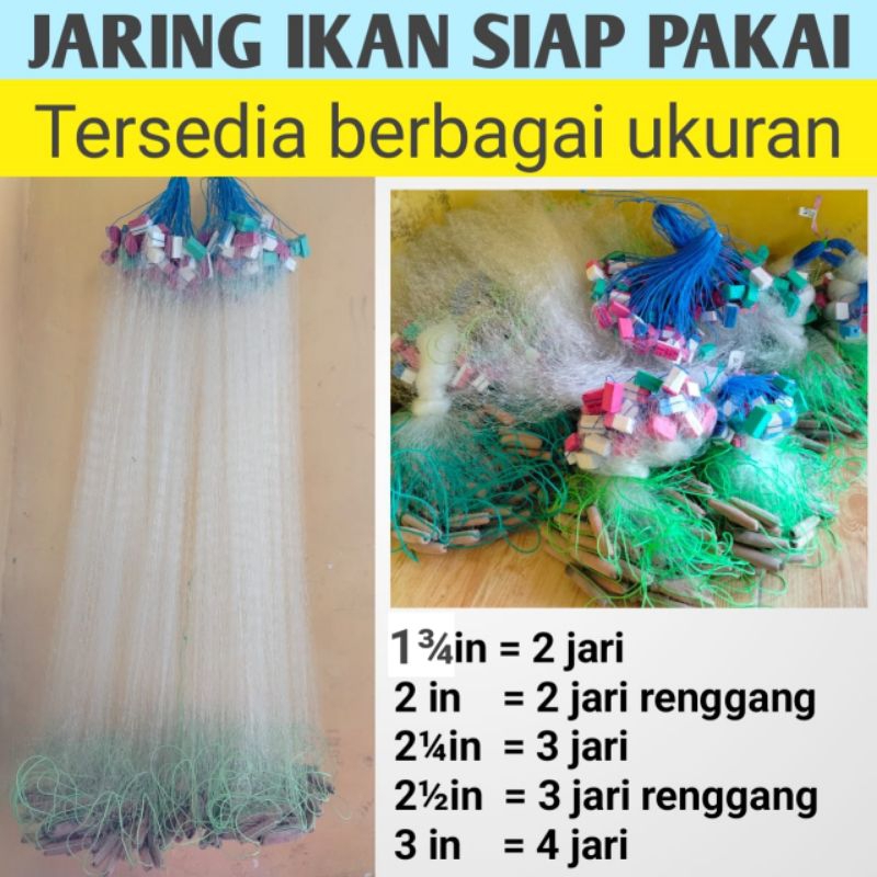 Jaring ikan penangkap jebakan ikan mudah dan siap pakai panjang 25m tinggi 1m ukuran 2 3 4 jari
