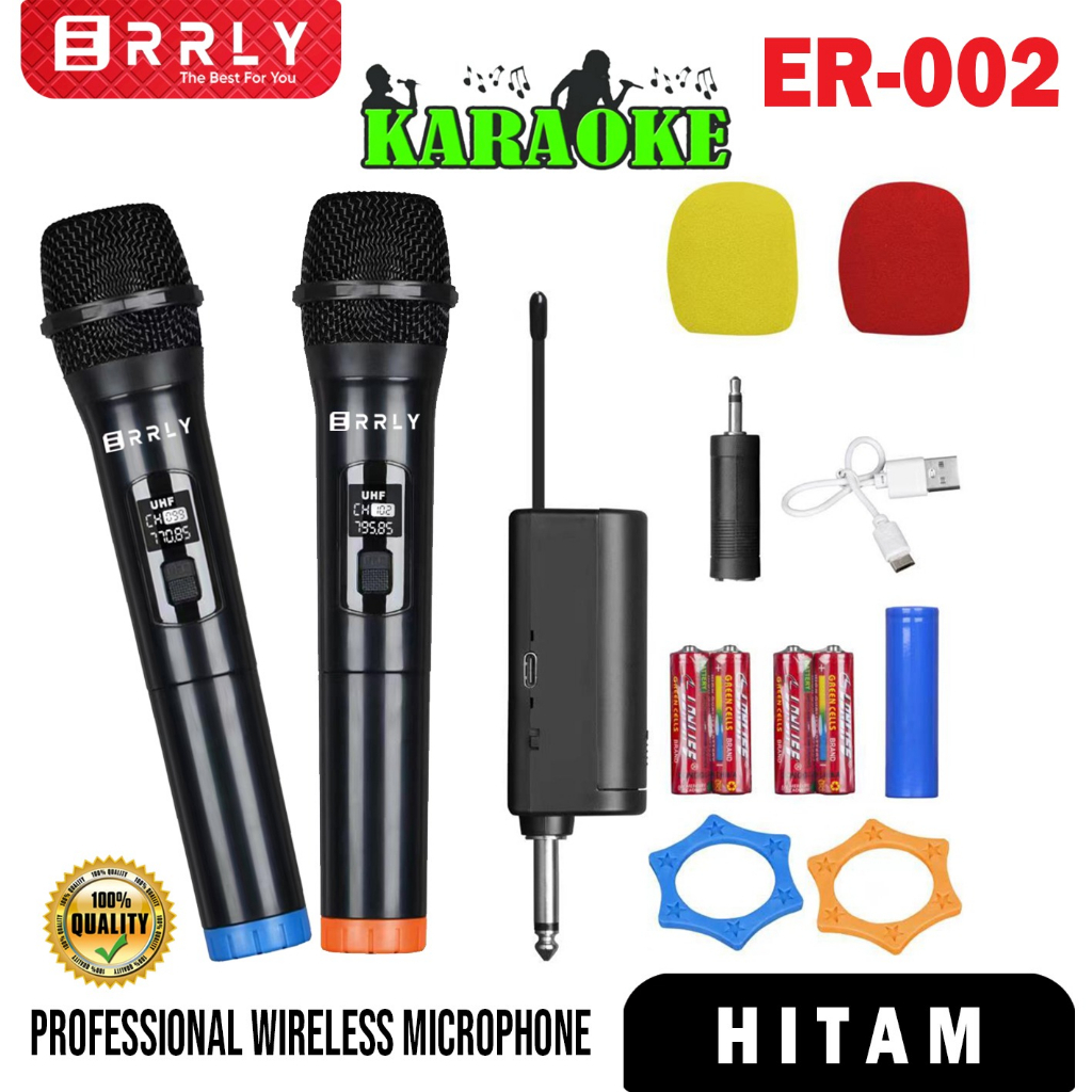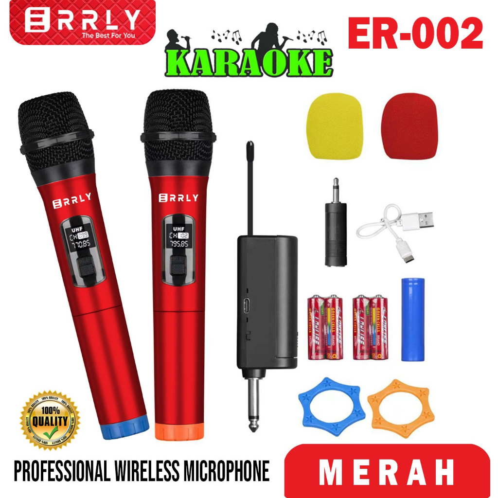 MICROPHONE WIRELESS ERRLY MIC-02 Double Digital LED Profesional MIKROFON ER-002 KARAOKE TANPA KABEL ISI 2 PICS Suara Dijamin Bagus bossku.