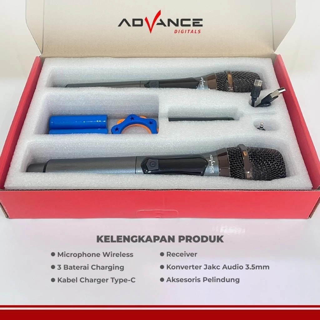 Advance MIC207 Double Mic Bluetooth Karaoke Wireless Microphone Suara Jernih BONUS Baterai Cas 3 Pcs