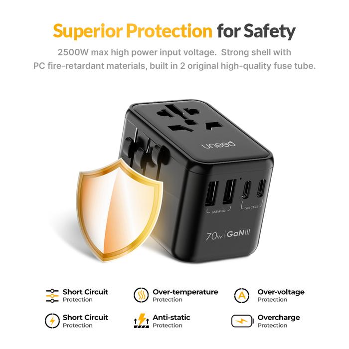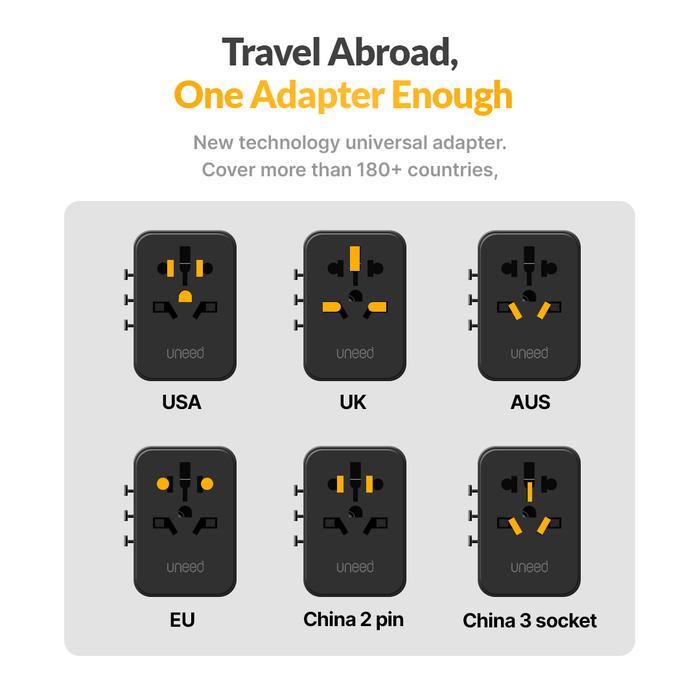 UNEED UNIVERSAL TRAVEL ADAPTER GAN CHARGER 70W 5 PORT PPS PD QC - UCH792