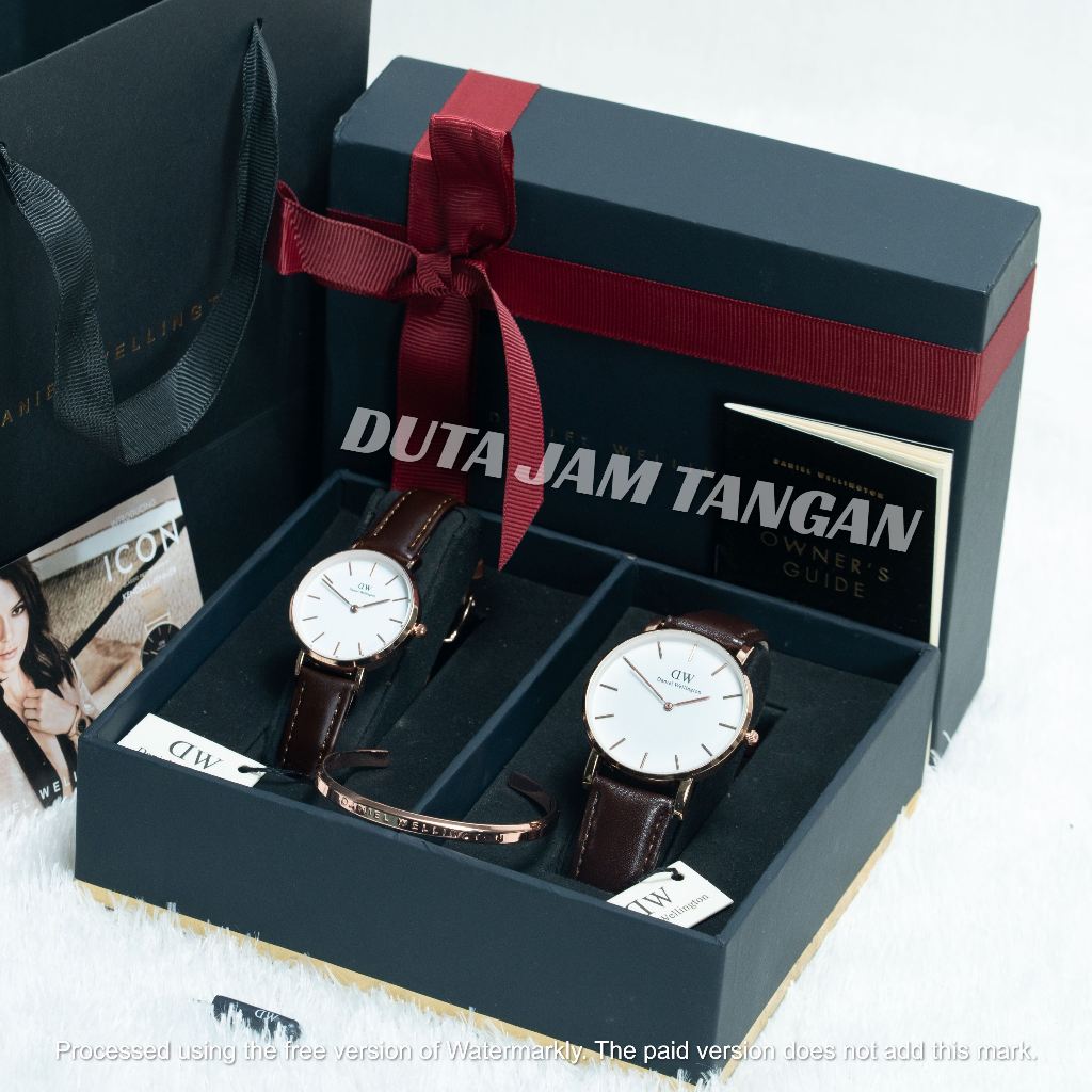 Paket Fullset Jam Tangan Couple Pria Wanita Kulit WD502