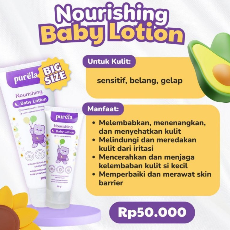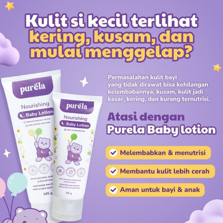 PURELA Soothing Baby Cream 70gr & Nourishing Baby Lotion 185gr - Combo Glowing Jumbo