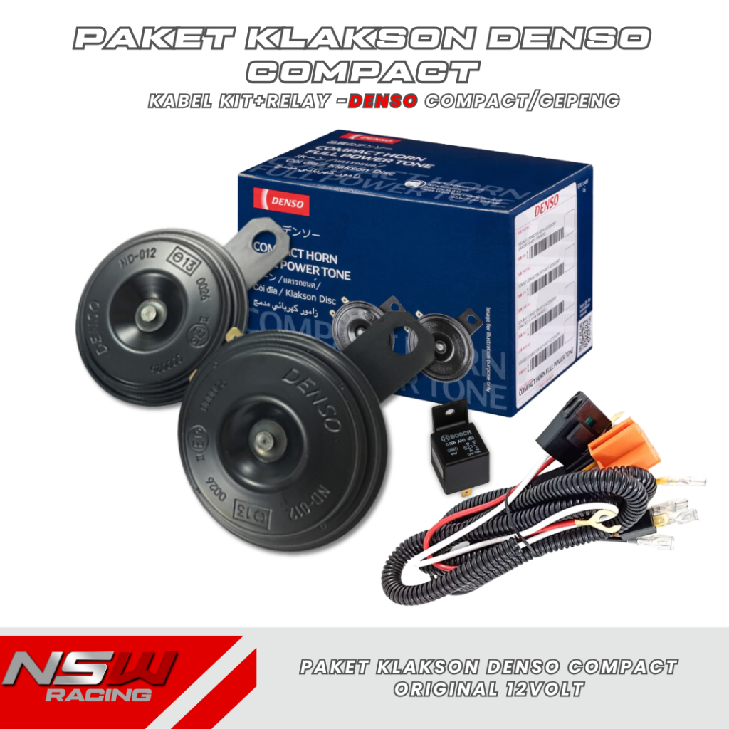 KLAKSON DENSO DISC COMPACT Power Tune 12volt set kabel kit relay mobil motor Denso original