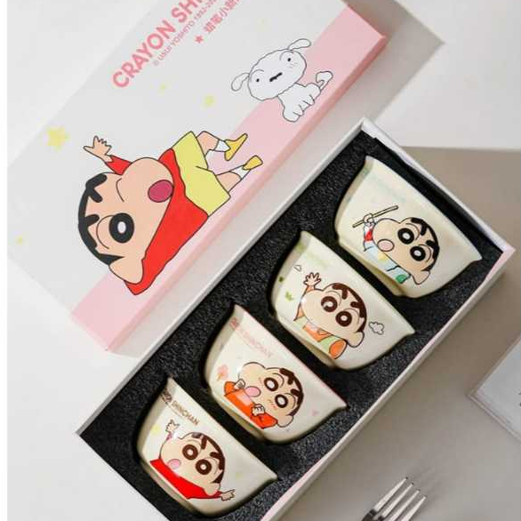 New Hampers Kado Hadiah Shinchan 4 Bowls Mangkok Set