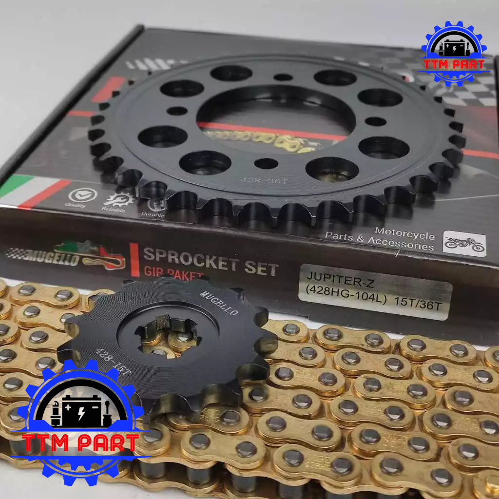 GEAR PAKET BAJA YAMAHA JUPITER Z - BURHAN - VEGA R - VEGA LAMA - VEGA R NEW - FIZR - CRYPTON - ALFA - FORCE 1 15/36T 428HG - 104L GIR SET MUGELLO