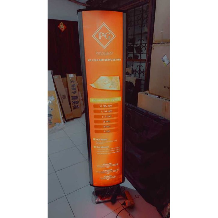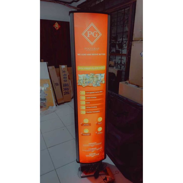 Rotary Light Box Rotary Banner Stand, Stand Banner Led Light Box (Alas Besi Stenlis ) tanpa printing muter dua sisi