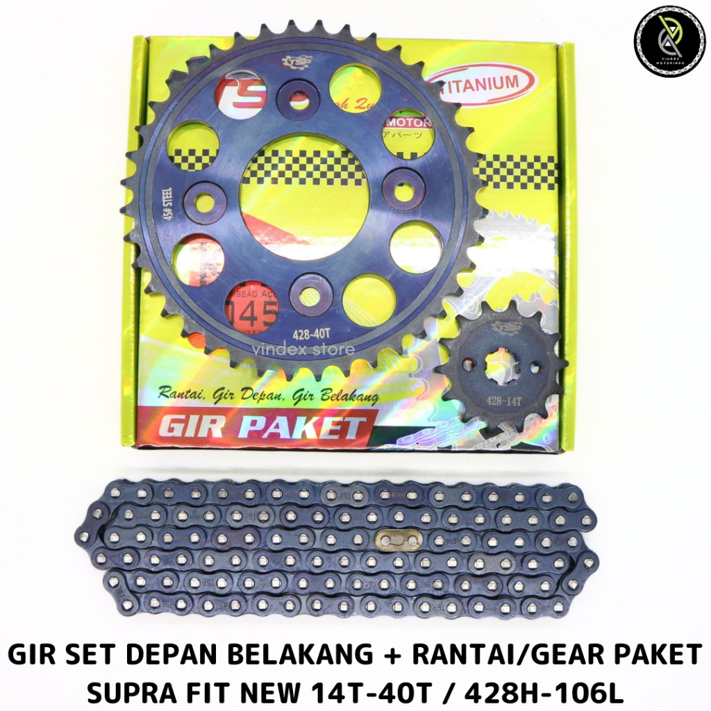 GEAR PAKET GIR SET RANTAI SUPRA FIT NEW SUPRA X 125 FI REVO LAMA 14T-40T/428H-110L TSP