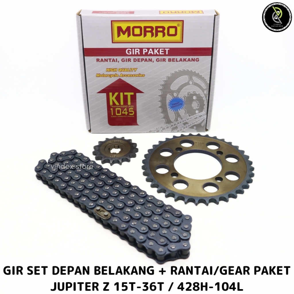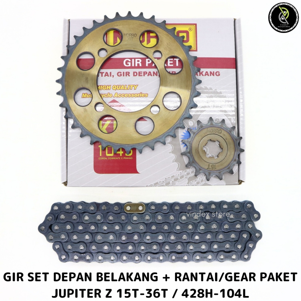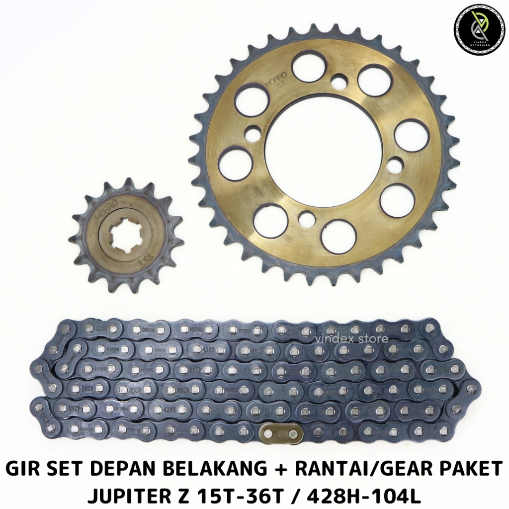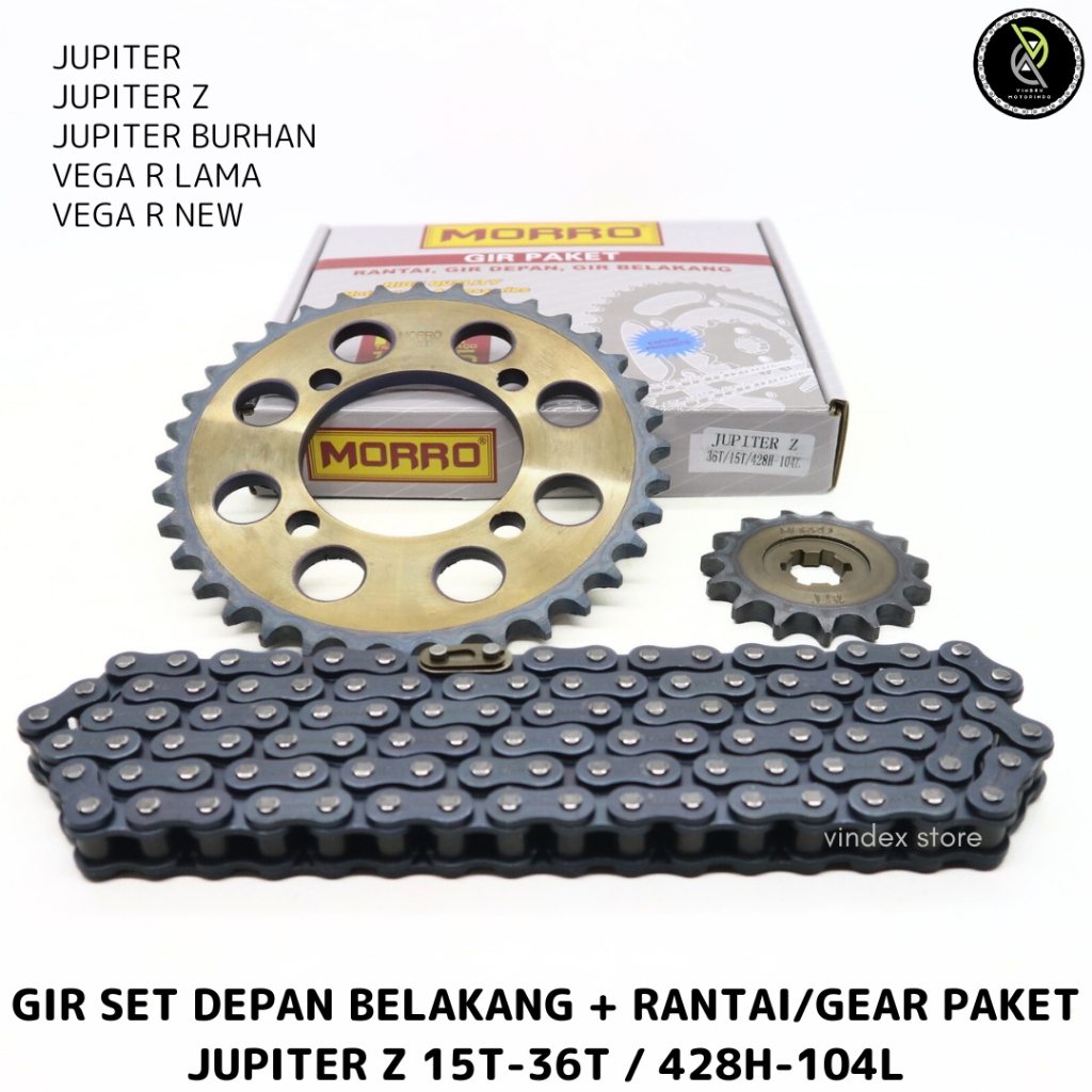 GEAR PAKET GIR SET RANTAI JUPITER Z BURHAN VEGA R NEW/LAMA 15T-36T/428H-104L MORRO