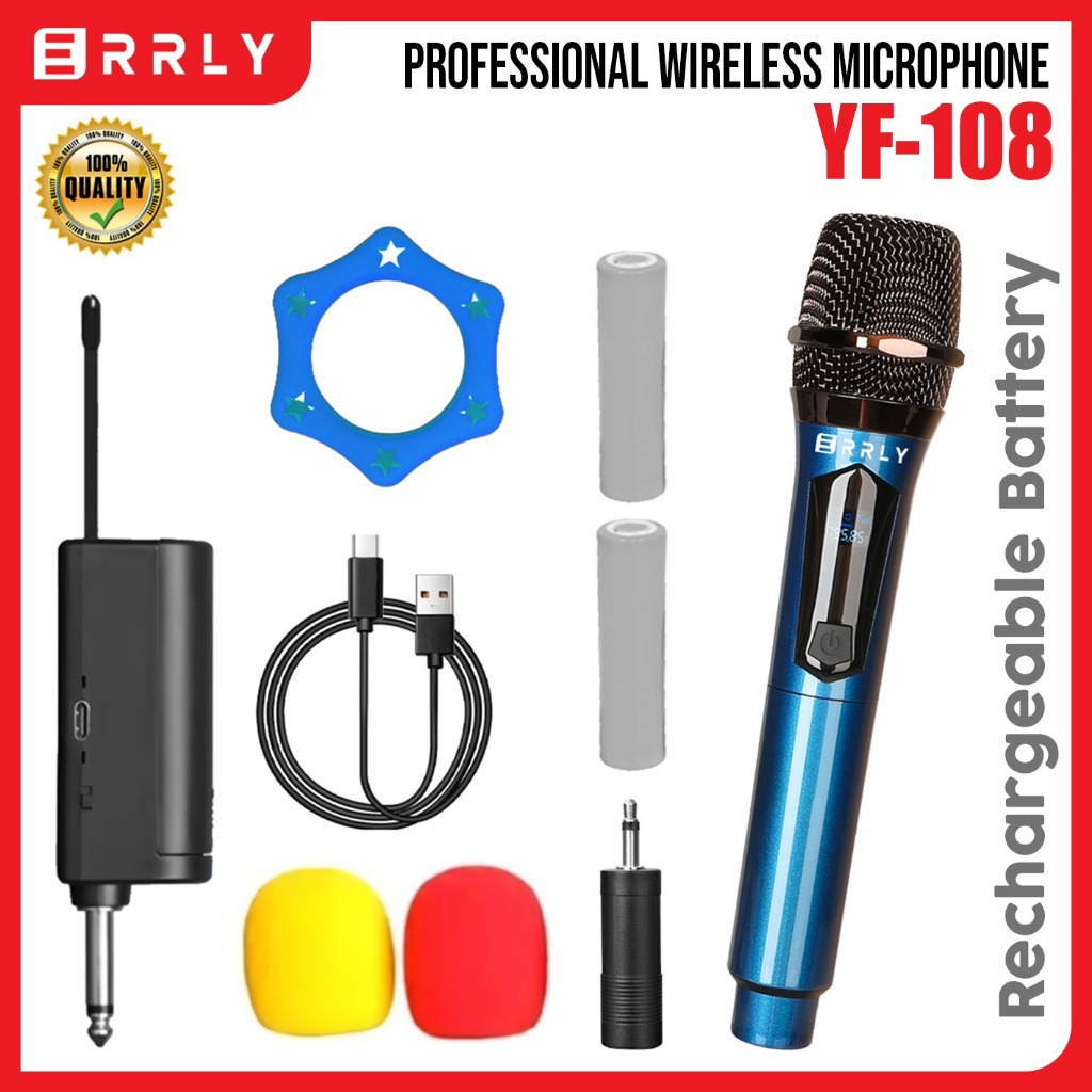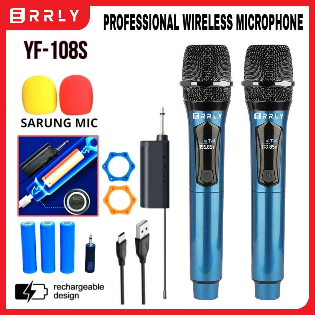 Mic Karaoke Wireless DUAL Microphone Karaoke ERRLY YF108 YF108S With Receiver System Mic Karaoke Genggam Recahrge / Bisa isi Ulang
